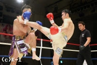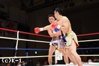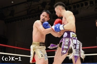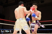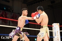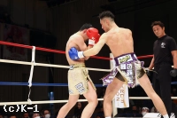 1R、開始すぐに篠塚が飛びヒザを見せるも、新美は直後に左ストレートを決め先制のダウンを奪う。立ち上がった篠塚に新美は左ストレートからボディへのヒザ、右フックと攻めて出る。篠塚はこれに右ストレート、左フック、左ボディフックとパンチを打ち分けて対抗。新美はガードを上げて向かい、篠塚のパンチをブロックで弾き左右の細かなローを入れる。ガードを固める新美だが、篠塚はその合間からパンチを滑りこませていく。新美は被弾があっても変わらずに篠塚にローを蹴りつける。篠塚の右ストレートにやや動きが止まる新美。そこから右フックで篠塚をとらえるが、篠塚も右ストレートを打ち込む。