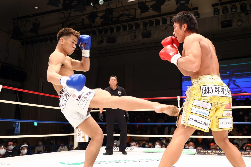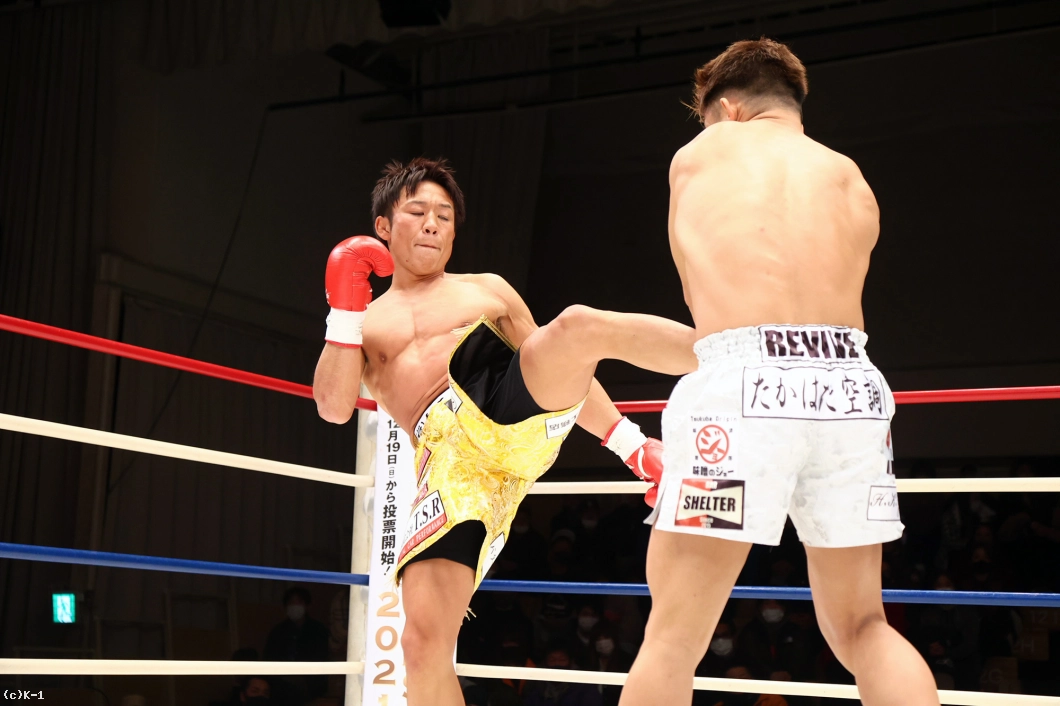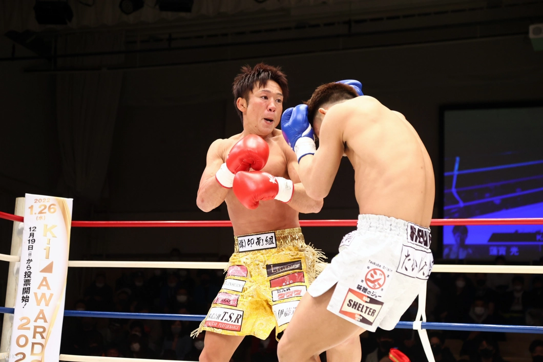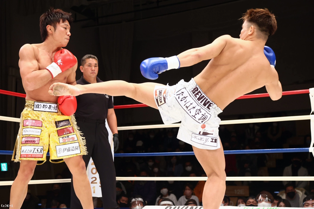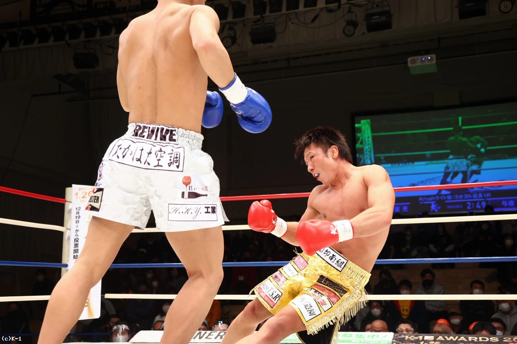 「Krush初参戦だったんで倒し方にこだわっていました。結果的にKOで勝ててよかったんですけど、1Rはかたくなっちゃたんで。そこは次に向けて改善したいと思います。(対戦相手の印象は?)自分の蹴りを対策しているのが伝わって、細かいフェイントに反応してくれなくてやりづらかったです。ただパンチはブロックできていて大丈夫だなと思いました。(今後は)K-1チャンピオンになるためにK-1 JAPAN GROUPに来たんで、強豪を一人一人倒して必ずベルトを巻きます」