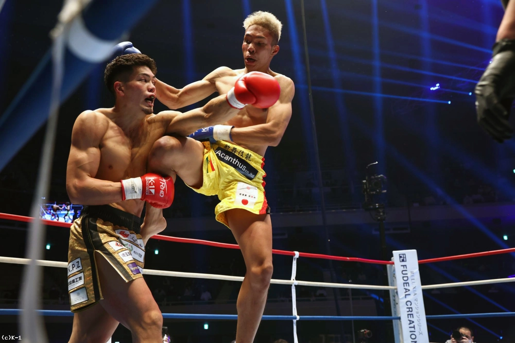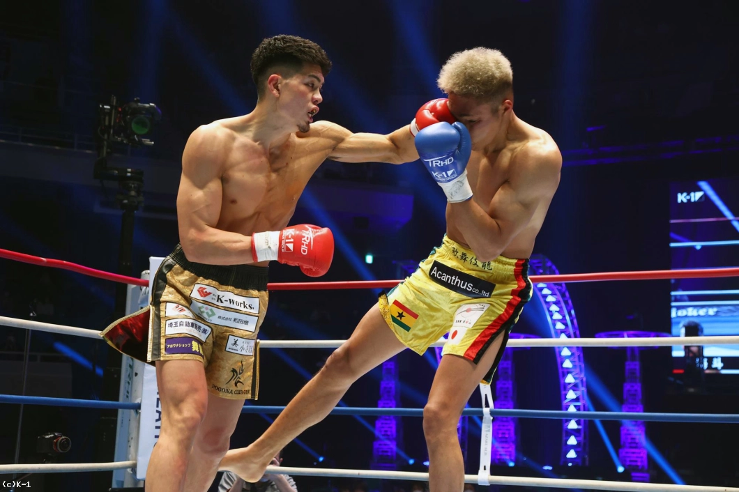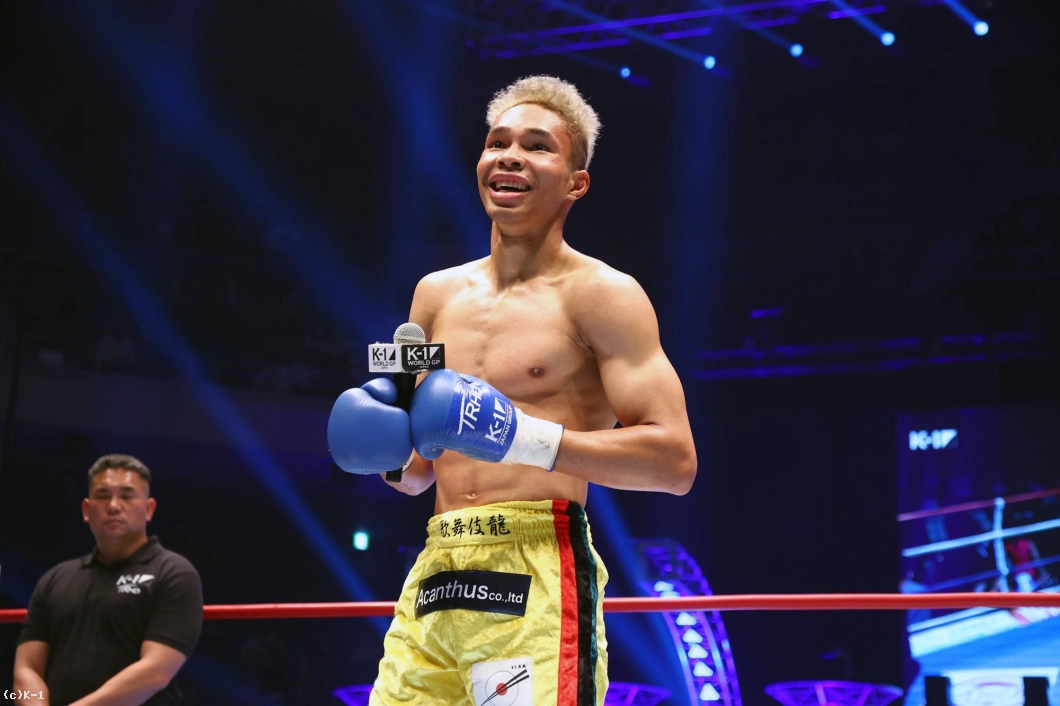 「K-1ファンのみなさん、初めまして。対戦してくださった海斗選手、決まってからずっと怖かったですけど成長したかったので頑張りました。本当にありがとうございます。ジムの先輩方とか仲間とか会長、家族とか地元の仲間とか自分は本当に恵まれていると思います。もっともっと強くなれると思うので、これからも応援よろしくお願いします。まだ面白い試合がずっとあるので楽しんで帰ってください」