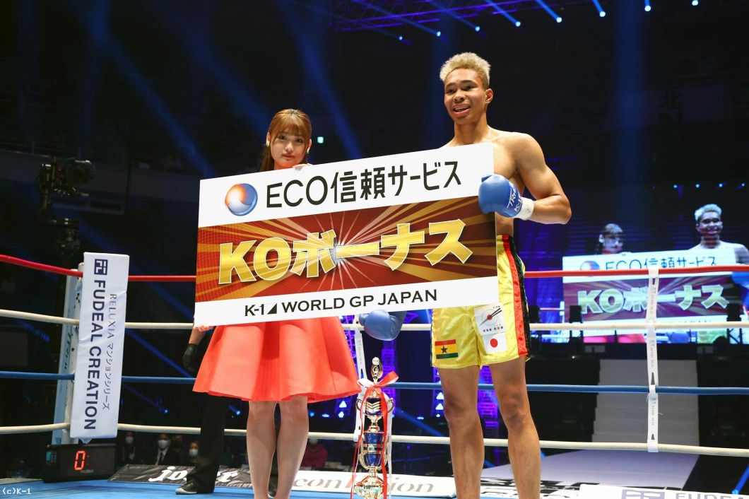 (ファンへのメッセージを)今日は本当に応援ありがとうございました。試合中もすごく歓声が聞こえて、力になりました。次の試合も、KrushかK-1か分からないですけど、絶対KOで勝って、もっともっと上に行っていつかベルトを巻いて、皆さんに恩返しできるように頑張ります」