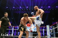 2R、K-Jeeは疲れが感じられるが、ガードを固めて前に出る。カリミアンはガードからパンチを返しヒザを突き上げるが、これもホールディングしてしまいレフェリーが注意する。カリミアンは攻撃力を戻しており左フック、右ストレートを飛ばすが、そこから掴んでのヒザを放ってしまいレフェリーがここも注意する。再開後、やや棒立ちとなったK-Jeeにカリミアンはバックブロー。これにK-Jeeは倒れ、立ち上がるも目が定まっておらずレフェリーがストップした。