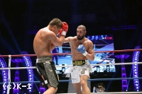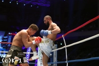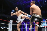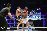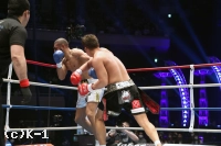K-Jeeは右フック、左フックで襲ってKOを迫るが、カリミアンは何とか組んでダウンを拒む。K-Jeeはボディを叩き、ローも打ち込む。K-Jeeはさらにハイキック、バックブローと猛攻もカリミアンは立ち続ける。そして顔へのヒザで反撃するがここでK-Jeeを掴んでしまい注意を受ける。