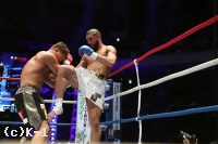 1R、カリミアンはローとミドルで先制するがK-Jeeが右フックを当て、カリミアンはたまらず組みに出るが、そこをK-Jeeは右フックでとらえカリミアンはダウンする。立ち上がったカリミアンにK-Jeeはすぐに向かっていき、再び右フックでとらえて2度目のダウンを与える。