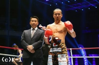 (ここからは?)自分のことなんですけど、リング上で言うのが最善でしたが、今回、菅原道場に入門して15年、プロのキャリア10年、40戦目の自分にとって特別な試合でした。これまでの時間の中で感謝を申し上げたい人、キリがないぐらいたくさんいます。その中でも今日はどうしても一人、入門して出会った菅原会長に、入門当時臆病で弱かった自分を、この日本武道館っていうリングで、勝利という結果をもたらすために……(涙で言葉にならず)、ここまで連れてきてくださったこと、本当に会長との出会いが自分の人生を変えてくれたと思ってます。その気持ちを、リングの上で本当はどうしても言いたかったんですけど、すみません、今日は勝利という形で終わることができてよかったと思ってます。押忍。