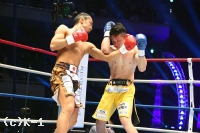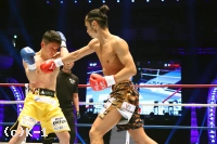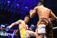 2R、島野は三輪のカーフをブロックして押し戻し、変わらずフックとアッパーを上下打ち。三輪はガードを固めてパンチを弾き、前に出て島野を押していく。ラウンド最後には三輪がカーフを決め島野がダメージを見せる。
