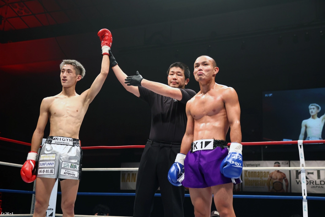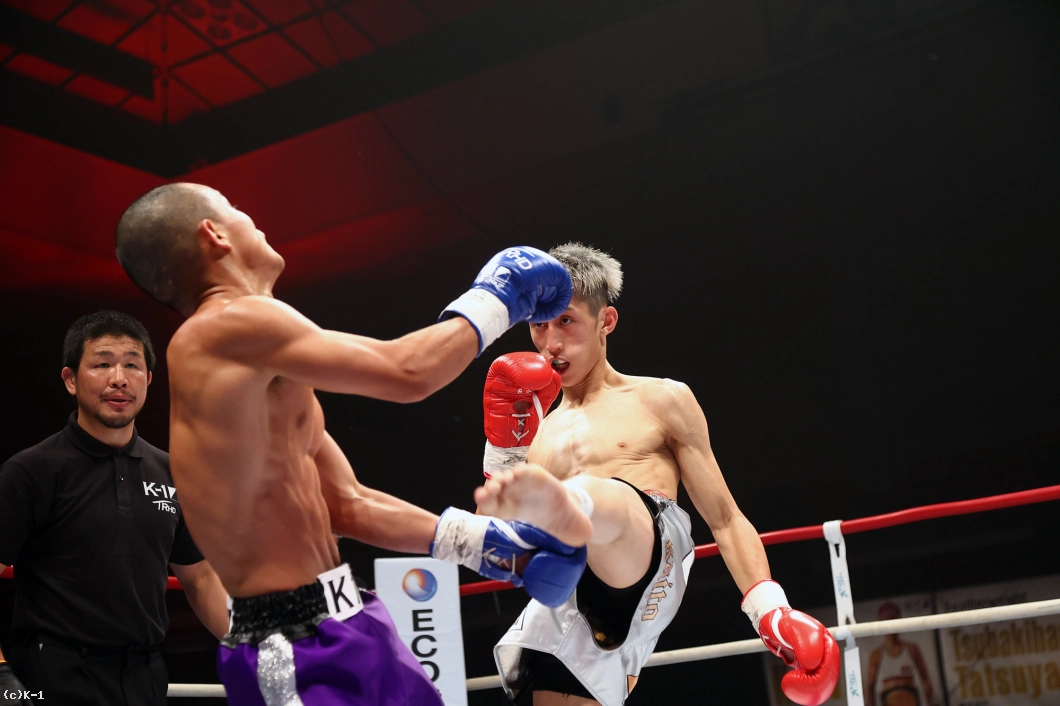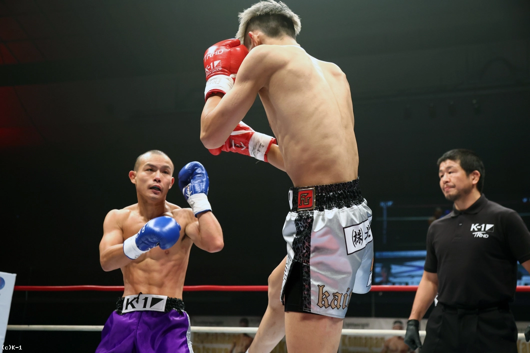 3R、距離を詰めてパンチを振るう西林をやり辛そうにする山脇。しかし中盤に顔面前蹴りを西林に決めるとそこから前に出ていく。だが西林も右フックを当て反撃。終盤は距離が近くなり、両者ややもつれて終了。判定は30-30、30-29、30-29の2-0で山脇。蹴りで試合を作り勝利した。