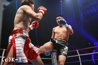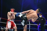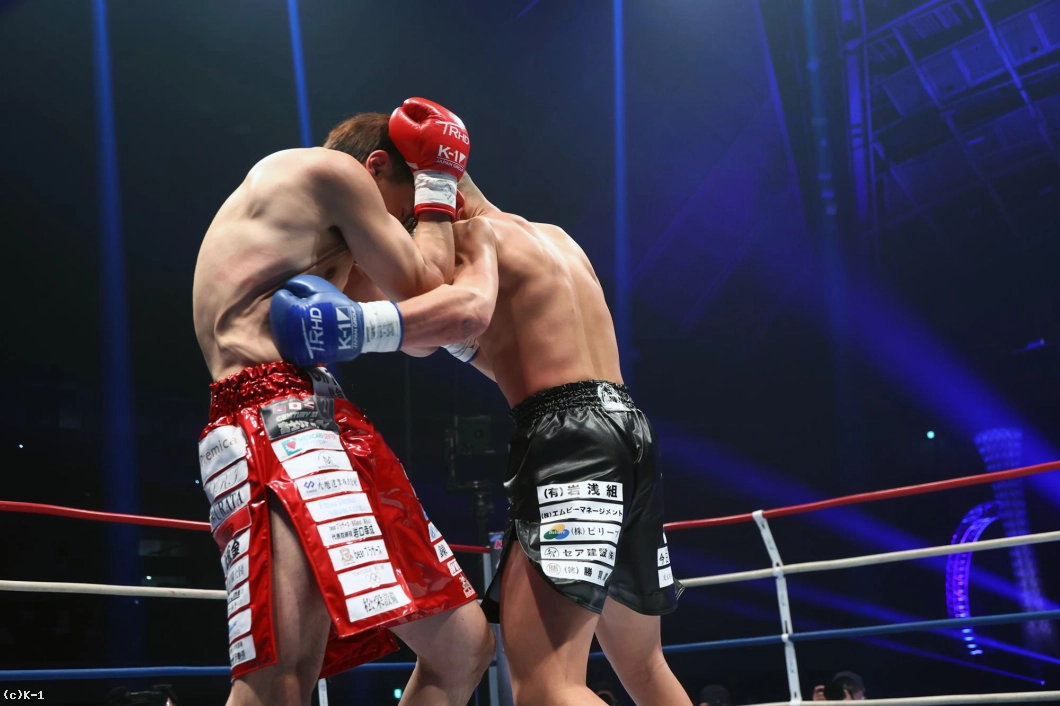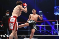 2R、山際が右ハイでけん制。中野と距離が詰まると山際は右三日月で突き放す。ロープを背負った山際へ中野が左右フックの連打。至近距離で中野が回転のいいコンビネーションを見せると、左フックが山際の顔面を捉える。中野が山際の右蹴り足をつかんでしまい警告。ラウンド終盤に山際の蹴りがローブローとなり一時中断。ロープを背負った山際に中野が迫ると、山際がパンチの打ち合いに応じる。