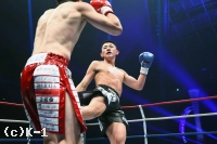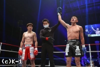 延長R、フックを振り前進するのは中野。大振りの右フックが山際の側頭部を軽く空エル。山際は中間距離で右ミドル。パンチの手数は中野が勝るが、山際がクリーンヒットを許さず、至近距離で左ヒザを突き上げる。リング中央で山際が右ミドル、中野が左フックを交換する中で試合終了のゴング。金属音が鳴り響くと同時に中野が手を挙げ勝利をアピールした。ジャッジは3者とも中野の勝利を支持。中野が剛腕でベテラン・山際を下し、ウェルター級進出初戦を勝利で飾った。