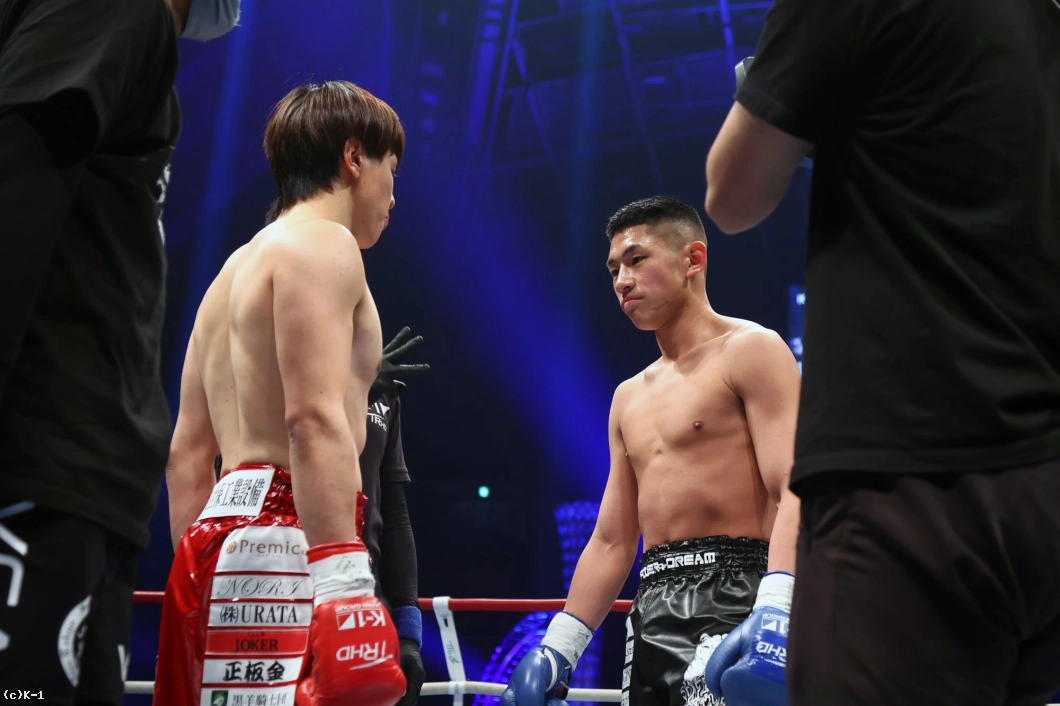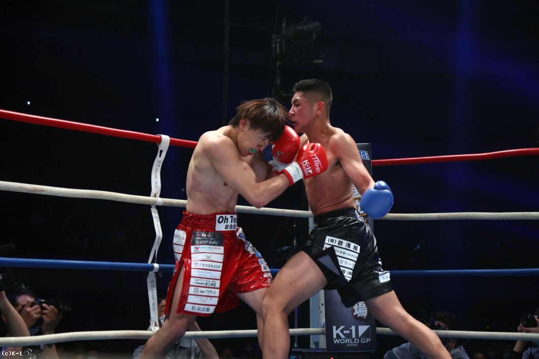 3R、山際は中距離から右ミドル。中野は早々に山際の足をキャッチしてしまい注意。さらにキャッチを繰り返し、警告となる。再開後に中野がパンチで迫るも、またも右ミドルをつかんでしまい減点1が下される。強引に距離を詰め大振りの左右ボディを打ち込む中野。ヒットはあるが、山際も右ミドルで押し返し攻め込ませない。中野がフックで距離を詰め山際が右ミドルで押し返すまま試合終了のゴングを迎えた。ジャッジは29-29、28-29(中野)、29-29。中野優勢も減点が響き延長に突入する。