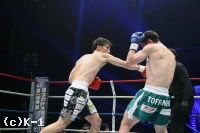 2R、トファネリの右ハイキックをスウェーでかわし左のローをヒット。左ジャブを伸ばす佐々木へ合わせたトファネリの右ロングフックが佐々木の顔面を捉え、佐々木の足が揺れる。後退する佐々木へトファネリの右ストレートがヒット。ロープを背負う佐々木は細かいパンチでトファネリに手を出させない。佐々木がパンチの連打でトファネリの顔面を捉えるが、トファネリも手数を止めない。