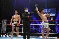(勝つところまでいける自信があった?)そうですね。自分は自分を信じてましたし、苦しい場面はすごくたくさんあったんですけど、そのたびに(渡辺)雅和さん(KREST代表)から熱い言葉をかけられて、それで踏ん張れて最後まで頑張れました。(リマッチがタイトルマッチになる可能性が高いが)当然、次はベルトがかかってくるとなると、朝久選手も今日の2倍、3倍以上に強くなってくると思うので、そうなった時にまたしっかり勝ち切れるような強さを発揮できるように練習に向かっていきたいと思ってます。