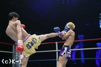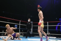 2R、左右のパンチを振る大久保に西林が打ち合いに応じる。距離を取ると大久保がワンツーから左ハイキック。西林の入り際に大久保は右ヒザを顔面に合わせる。西林は頭から突っ込み左右フックをボディへ集中。頭を振りながら西林がオーバーハンドの右フックを浅くヒットする。