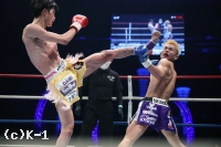 3R、距離を詰める西林が左ジャブから左右ボディ。大久保は西林の入り際に右ヒザ、左ミドルを合わせ突き放す。西林は頭から入り距離を詰めフックを上下に散らす。多くぼっは打ち下ろす右ストレートで突き放すが、西林が前に出て距離を詰める。両者パンチを交換するまま試合終了のゴング。判定は30-27、30-26、30-27でが大久保が判定勝利を飾った。