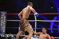 (その後にいろんな思いが込み上げてきた?)絶対立ち上がる王者ですし、ダウンがあってからも巻き返して逆転勝利だったり、ドラマチックなKO勝利だったり、そういうのをしてきた選手だったので、ダウン取った後は『絶対くるぞ、これは!』と、もう一回絶対倒しにくると思って、自分も集中を切らさないように意識してました。