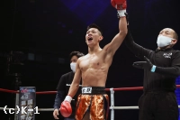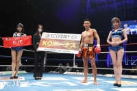 「(試合の感想は?)自分の殻を破れたじゃないですけど、一つ壁を越えられたなというのは感じます。(試合前と後での対戦相手の印象は?)特に変わってないですかね。同い年というのもあったので、絶対負けられないなという気持ちで挑めました。(グイグイ押せていたと思いますが)ギリギリのオファーでスタミナにちょっと不安があったので、1Rで決着つけたいなと思っていたので、よかったと思います。(トーナメントに入れたことについては?)もともとやってた階級よりは1個上の階級で、特にライバル視とかはしてなかったんですけど、今回から階級とかも改めて考えたいなとは思ってます。(ファンにメッセージを)今日一つ、自分の中で壁を越えれたなと思うので、今後はこのまま軌道に乗って勝ち続けたいと思うので、変わらず応援よろしくお願いします」