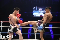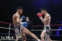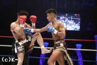 2R、外から鋭い右カーフ、右ストレートを放つ迅。ガードを固め前に出る光佑へ右カーフ。左ローと散らし光佑の左足を削る。光佑の重いローに迅が左前蹴り、右ストレートから左フックとコンビーネーション。ホールディングで警告を受けた光佑を迅が右ボディ、右アッパーと多彩な攻撃で攻め立てる。