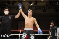 「チームで決めた作戦が完璧にハマって冷静に試合ができたから問題なく勝てました。(対戦相手の印象は?)事前の印象通りでした。作戦が完璧にハマりました。(今後の目標は?)まずKrush大阪大会を開いてください。あと今年は最低でもKrushのベルトを取るんで、次はそこにつながる試合をお願いします」