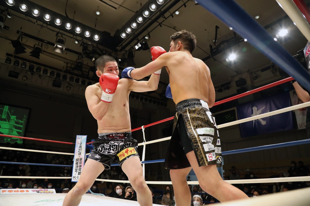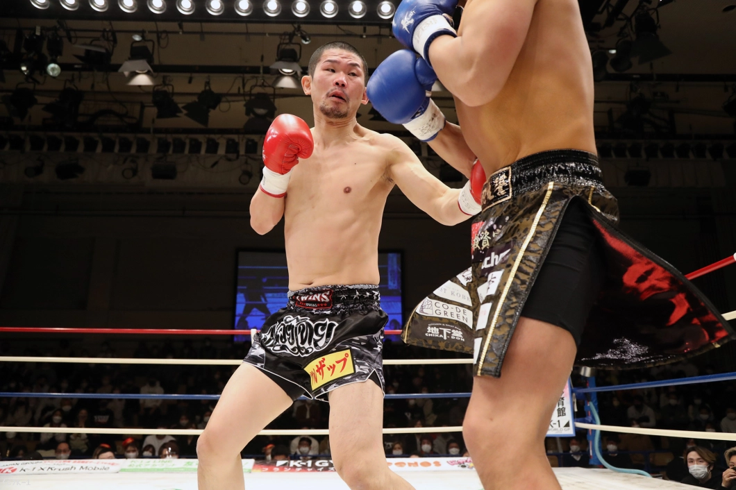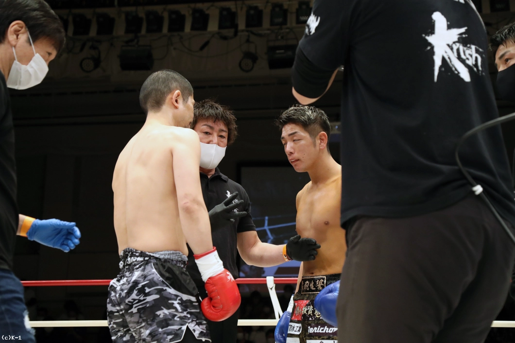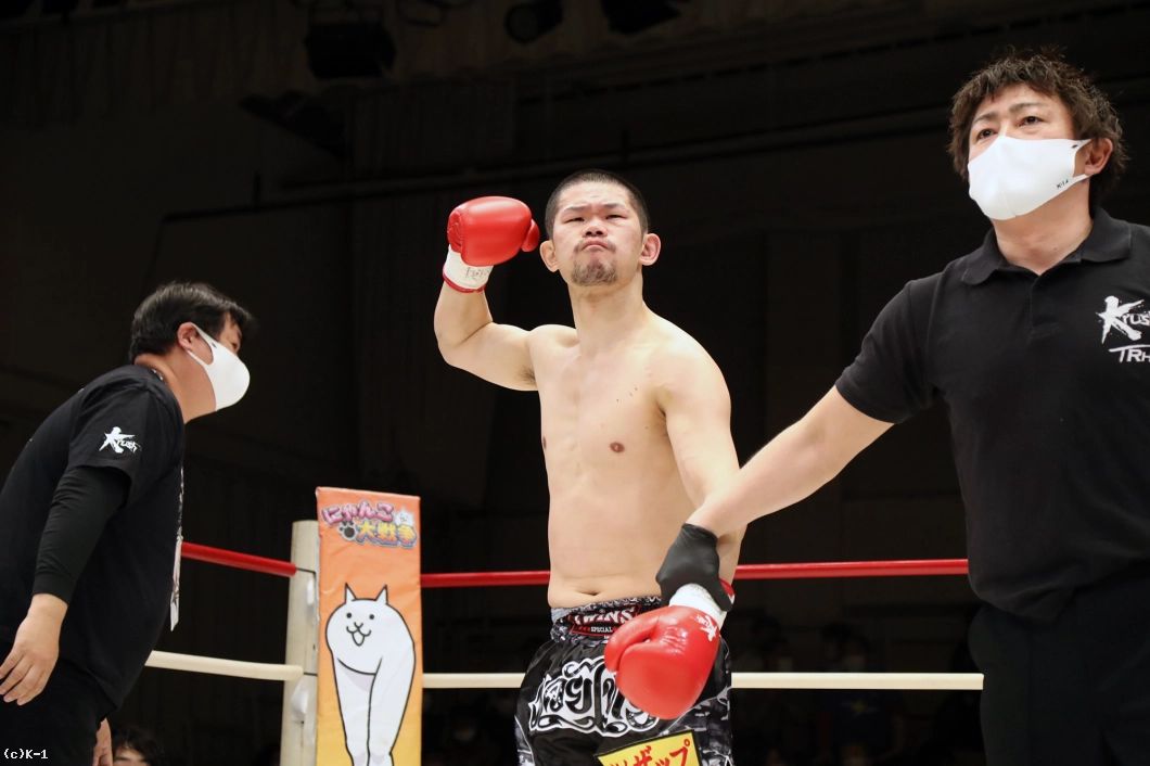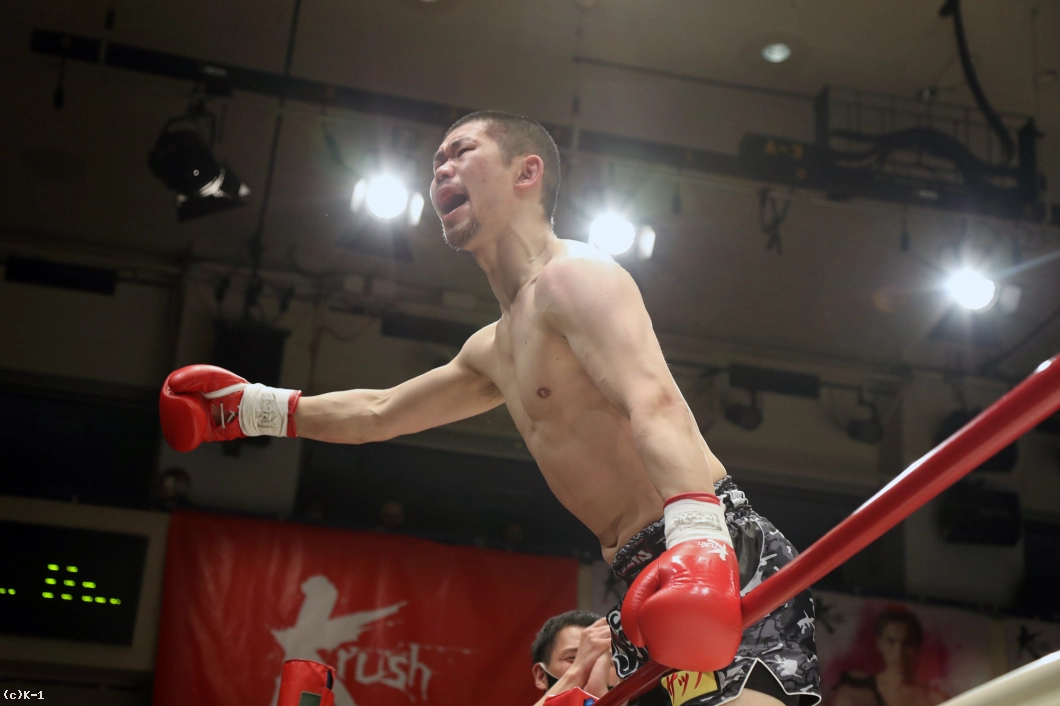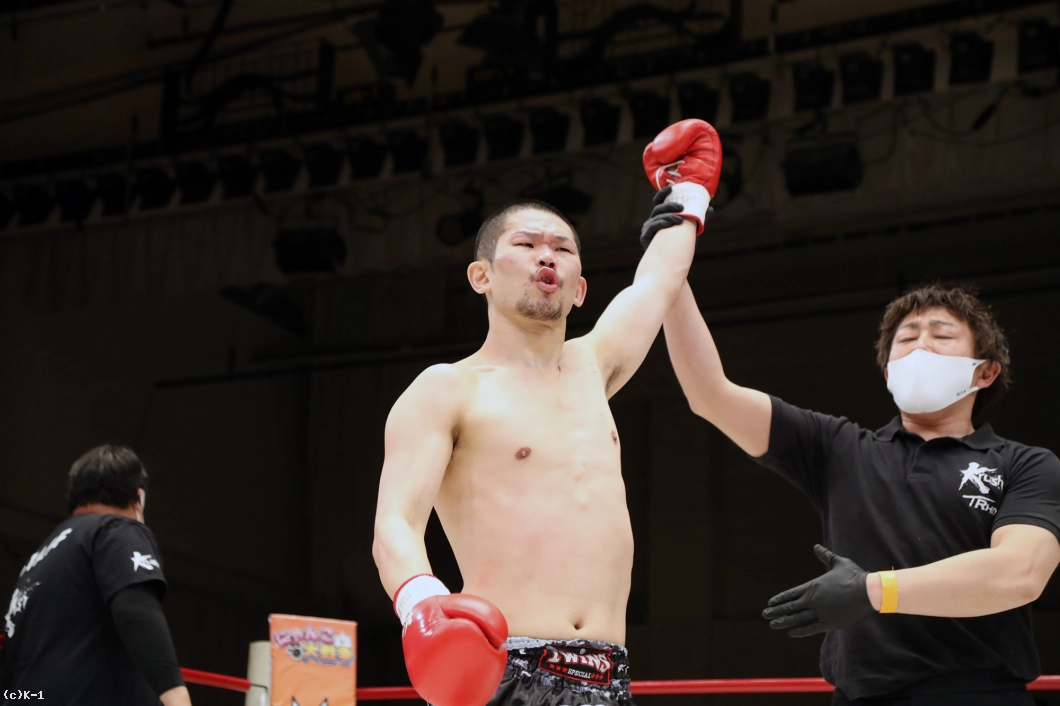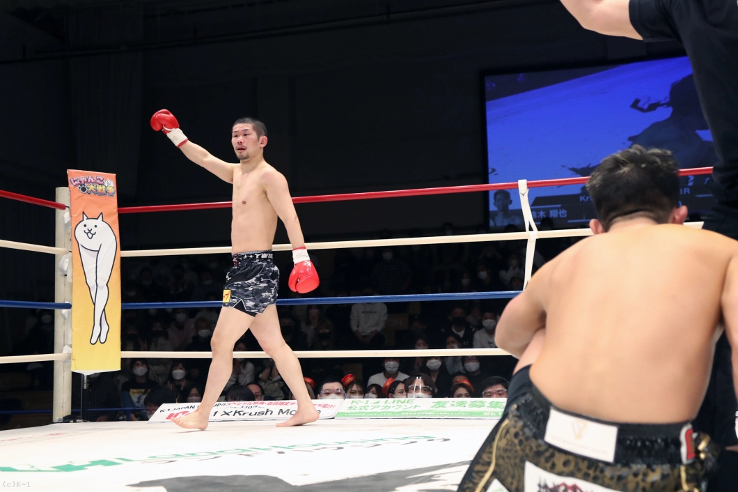 「想像以上にパンチをもらって倒れてしまって。上ずっているというか、重心が上がっている感じがしました。なんとか勝ててよかったです。(相手の印象は?)試合映像を見てダイナミックな動きが多かったので、そこに注目していたんですけど、パンチも細かくて上手かったです。(今後の目標は?)僕は記念でKrushに出ているわけじゃないので、トップを獲りたいです。瓦田選手を引きずり出すために、まだ自分はKrushルールが下手くそで経験をつまなきゃいけないと思うので、何人か倒してタイトルマッチに辿り着かなきゃなと思っています」