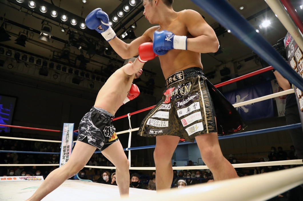 2R、鈴木は前に出て左フック、右ストレートで攻める。しかし弘輝が左フックを決め3度目のダウンを奪う。あとがないと思われた鈴木だが、弘輝の左ストレートをかわして直後に右ストレート。弘輝はこれに打ち抜かれて倒れ、鈴木の大逆転KO勝利となった。