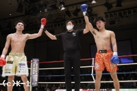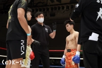 3R、前に出て接近戦を仕掛ける宮川。北村はこれを押し返し、ボディへのヒザ、アッパーと打ち込む。宮川はしかし圧力を緩めず、左右のローキックに繋げる。北村もこれにプッシングしてのヒザで対抗。両者拮抗して試合終了となる。判定は30-29、30-30、30-30で北村に1票入るもドロー。北村は声を上げ、宮川は首を傾げ、それぞれ悔しさを見せ退場した。