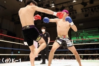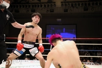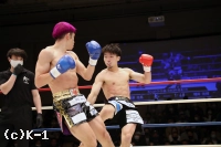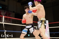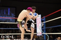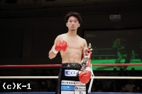 「1Rは動きがガチガチでやばかったですけど、2Rに修正できて上手くKOできてよかったです。KOは狙っていたんで出来てよかったです。(対戦相手の印象は?)試合前の印象通りなんですけど、思ったより蹴りが重かったです。(今後の目標は?)またK-1に戻って、K-1で試合をしたいと思います」