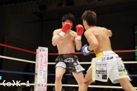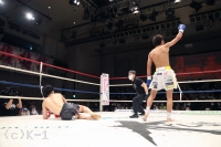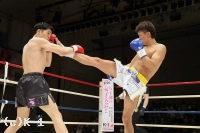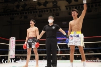 3R、三宅は右ミドルを当て、そこからバックブローと変則的な攻め。しかしローが原田にローブローとなってしまい、試合が一時中断となる。再開すると原田は右にサークリングしてジャブ・左ストレート・ヒザ蹴りと三宅を攻める。原田が攻勢であったが、ここで三宅は右アッパーを打ち込みダウンを奪取。さらに立ってきた原田の右フックに右ストレートでカウンターを取り、2度目のダウンを奪って試合を終える。判定は30-27、30-27、29-27の3-0で三宅。劣勢をひっくり返しての逆転勝利でデビュー4連勝とした。