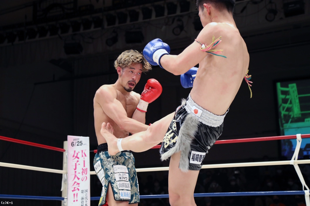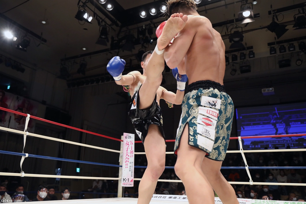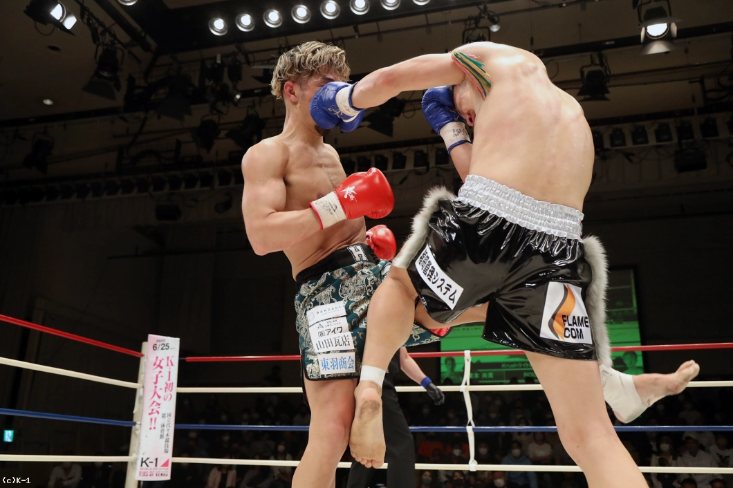 「勝ったんですけど、ダメダメすぎて反省点ばっかりが見える試合だったと思います。(対戦相手の印象は?)特になくて、戦ってみてパンチが強いなと思いました。(今後の目標は?)KOしてアピールしたかったんですけど、まだまだダメなんでまたやりなおして、Krushに戻ってこれるように頑張ります」