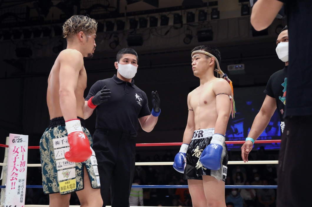 3R、ダウンのビハインドがある東本は左フックを強打するが、竜樹は高くしたガードで弾き、左フックと右ストレートを返す。東本のローが3度、竜樹にローブローとなってしまう。竜樹は左フック、右ストレートと当てるも、東本も右アッパーを突き上げ反撃。だが、竜樹は以降のクリーンヒットは与えない。判定は30-27、30-27、30-28の3-0で竜樹。ムエタイスタイルからのパンチでダウンを奪い勝利した。