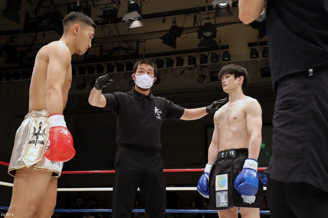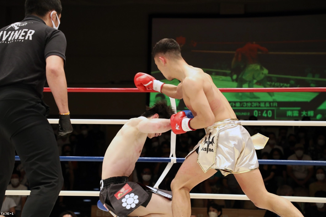 2R、伊藤は右ミドル、右ストレートと当てていくが、南雲もパワフルなローを返す。伊藤は南雲の入り際に左フックを合わせ、続いて右スイングフックをヒット。そして左フックで的確にとらえ南雲をダウンさせる。立ち上がった南雲は強打を振るうが、伊藤はハイキックから追い、右ストレートを突き刺し2度目のダウンを奪取。残り時間は少なかったが伊藤は逃がさずパンチで南雲を倒し切り連敗脱出の勝利となった。