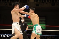 3R、中島はやはりサウスポーへのスイッチを見せて関節蹴り、右フック、左ハイキック、アッパーと変幻自在な組み立てを見せる。だが西元は左フックを当てて一瞬中島をグラつかせる。そこから前に出る西元だが、中島は左のショートフックを当てダウンを奪取。立ち上がりダウンを奪いに来る西元に中島はサウスポーで応戦。シャットアウトせんとするが、西元は右を当てる。だがラウンド最後に右クロスで中島が西元の腰を落とさせ試合を終える。判定は30-28、30-28、30-28の3-0で中島。再起戦を勝利し初防衛を果たした。