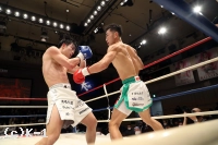 1R、両者オーソドックスで西元はリング中央を取り、カーフキックを入れる。中島は前蹴りと三日月蹴りを飛ばし、サウスポーにもスイッチする。しかし西元は惑わされずプレッシャーを緩めない。中島にロープを背負わせ展開する。