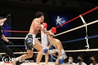 2R、山本が右ストレートをヒット。しかし野田もストレートを中心にスピードあるパンチを返す。山本は野田にパンチをブロックされるとミドルに連係。野田は間合いを詰めての接近戦から左右ボディ、そして顔へのストレート、飛びヒザと放つ。