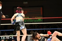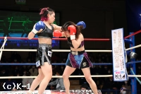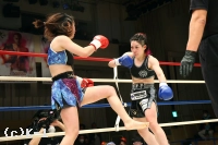 2R、櫻井は蹴りから左右ストレートを連係。次第に芳美へ圧力を効かせていく。芳美のカウンターを当てられても櫻井はパンチから繋いだ前蹴りで前に出る。構えをスイッチしカウンターで迎え撃つ芳美だが櫻井の圧力が勝り芳美を削る。