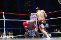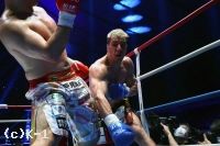 2R、サッタリは中央からステップインして左フックを放つが、京太郎はよく見てクリーンヒットさせない。スイングフック、ハイキックと放つサッタリだが、京太郎はやはりよく見て当てさせない。体格差で圧力をかけてサッタリを消耗させる京太郎。