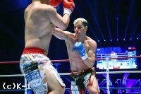 1R、サッタリの右ローからスタート。続いてサッタリは後ろ回し蹴りを放つが、京太郎は当てさせない。そしてサッタリにカーフキック(膝から下・ふくらはぎを蹴るローキック)を入れていく。サッタリはボディストレートを入れるが、京太郎は次第に前へ出て圧力を掛けていく。サッタリはしかし高速スピンキック、右スイングフックと放つが、京太郎すんでのところでかわす。