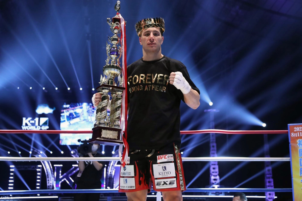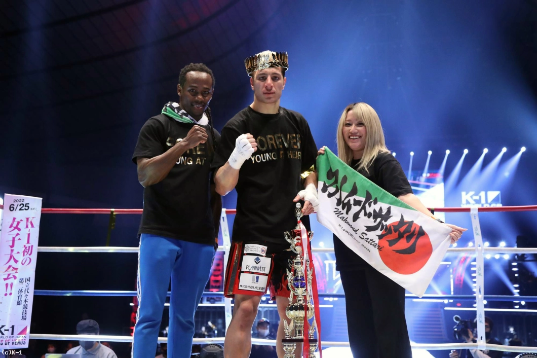 「オス! ミナサン、本当に嬉しい。日本のみなさん、イラン人のみなさん、ありがとうございます。中村プロデューサー、今日めちゃ頑張りました。6月の天心と武尊のイベントに私も出ます(笑)。今月イランの正月、ペルシャ語でちょっと話します。(ペルシャ語で挨拶したあと)すみません、ありがとうございます! 次はK-1のベルトがほしいです。みなさん、ぜひ実現させてください」