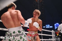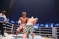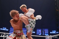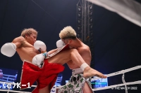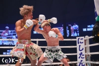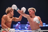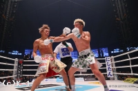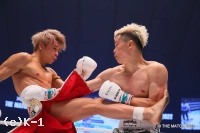1R、サウスポーが那須川。中央に陣取るのは武尊。那須川は強い左ミドル、二段蹴りと蹴りを繰り出す。武尊は細かい左ローを見せながら前進。那須川は手数を出し左ストレート、右ジャブを武尊の顔面に浅くヒットする。圧力をかける武尊の入り際に那須川が右ジャブ。真っ直ぐ下がる武尊に右アッパーから左ストレート。ラウンド終盤には武尊がプレッシャーをかけるが、武尊の左フックに合わせた那須川の左ストレートでダウンを奪う。
