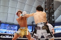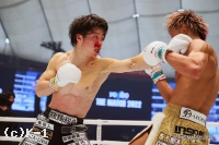 1R、鈴木が踏み込んで右ローを強打。鈴木の入り際に金子が右フックを合わせる。プレッシャーをかけるのは金子。鈴木は左ジャブから右ロー。入り込む鈴木に金子が左右フックから左ボディを浴びせる。鈴木も左右フックを上下に散らすが金子のガードが堅い。距離を詰めると鈴木が右アッパーをヒット。さらに右ストレートで追撃すると、金子も左フックで応戦し押し戻す。