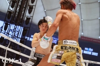 3R、金子が左ジャブで距離を測り左ボディ。鈴木は右カーフキックからワンツー。プレシャーを強める金子は右ミドル、左フックで距離を詰めると鈴木は右ストレートをヒット。金子が鼻血を出し始める。前に出る鈴木に金子が左前蹴り。鈴木は右ストレートを上下に散らし金子を下がらせる。ロープを背負う金子に鈴木がワンツーで迫り、金子が左フックを返したところで試合終了のゴングが鳴り響く。判定は30-28、29-29、30-29の2-0で鈴木。歴史的大イベントの第1試合はRISE王者の鈴木が勝利を収めた。