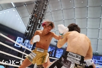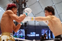 2R、鈴木が前進しワンツー、右ストレートを連打。至近距離では右ヒザを突き上げ金子のボディを削る。金子は左ジャブから踏み込んで左ボディ。変則的なフェイントから右ストレート、右フックで鈴木を攻め立てる。鈴木の入り際に金子が左フックを直撃させるが、鈴木は効いていないとアピール。金子が左ジャブで距離を詰めると、鈴木がカウンターで右ストレートを伸ばす。ラウンド終了直後には鈴木がフックで前進し金子にロープを背負わせる。