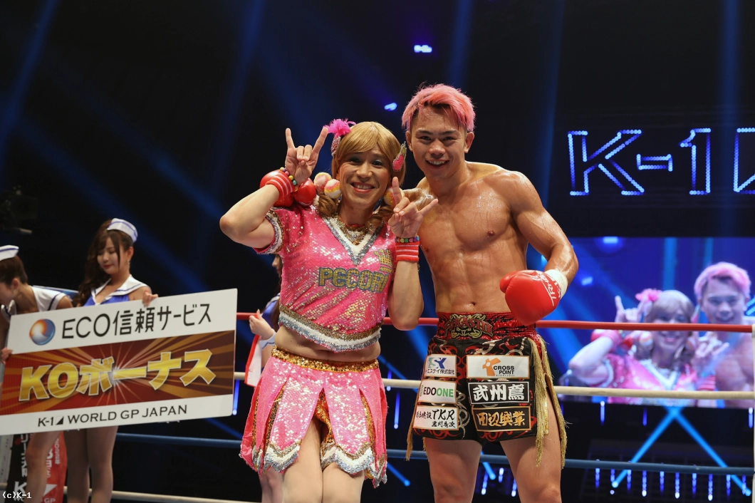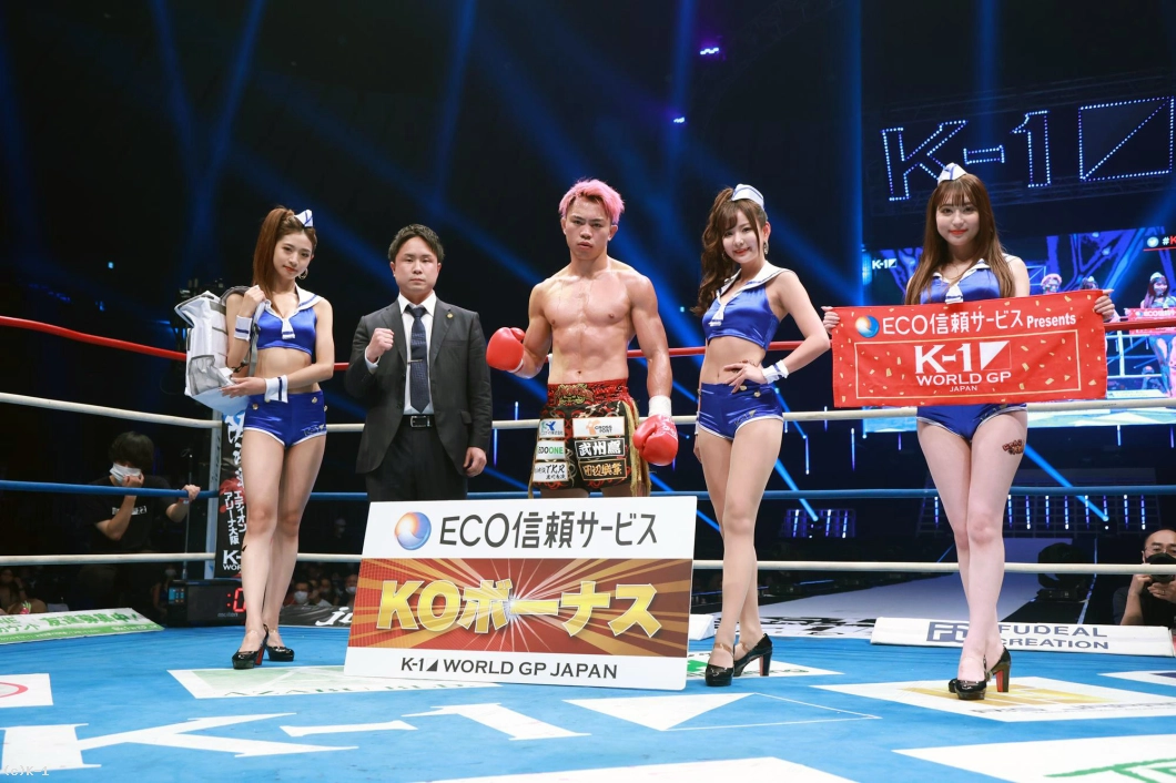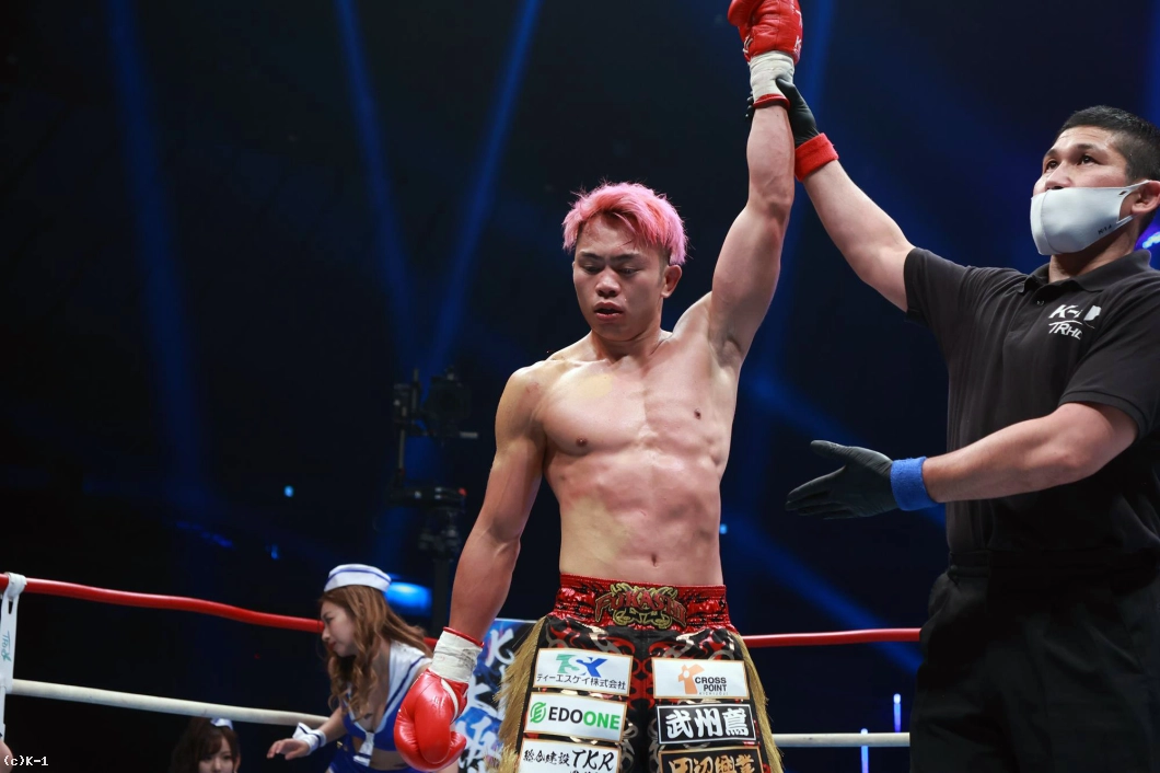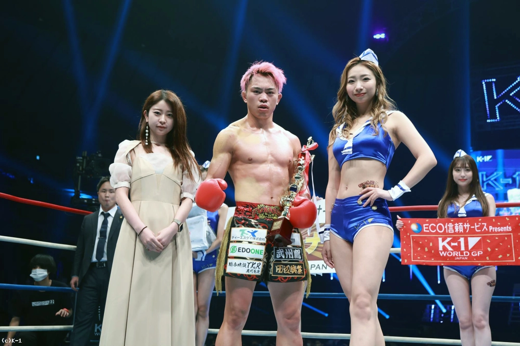 「おまえら見たか、ちゃんと強いだろ。K-1NEXTって言って、武尊が休んでる間に誰が目立つかって感じだけど、俺のこと忘れんじゃねぇよ。みなさん、今日はありがとうございました」