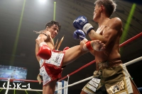 3Rも石井は前に出てプレッシャーを掛ける。黒田が飛びヒザを見せれば石井は左ボディフック。黒田は右ジャブで攻め、石井は右ミドルで黒田の左腕をとらえていく。黒田は石井の右ストレートを頭を振ってかわすが、石井も黒田の左ストレートを当てさせない。黒田は組み合ってブレークの後に加撃してしまい警告を受ける。