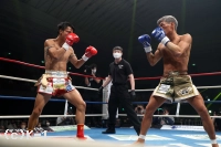 1R、オーソドックスの石井に対し黒田はサウスポーで左右にステップして左ストレートを飛ばす。しかし黒田の左ストレートをかわすと、石井は右ストレートを伸ばしてヒット。石井は距離を詰めていき左ボディフック。だが黒田も左ハイキックを当てる。