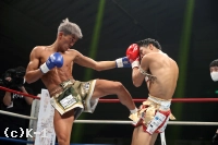 2R、黒田はロープを背負うも左ミドル。だが石井も右ミドルを連発してやり返す。石井は前に出て間合いを詰めていく。黒田もコーナーを背にするもスルリと石井とのポジションを入れ替える。両者ストレートは互いにヘッドスリップして当てさせない。石井の右ハイキックに黒田は左ストレートを当て体勢を崩すが、これはノーダウン。