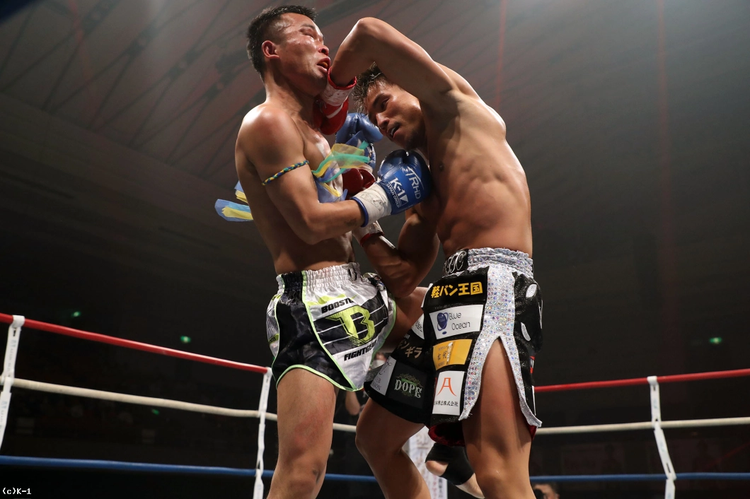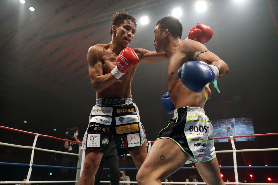 3R、軍司は右クロスを打ち込むが、ワンはすぐに左フックをリターン。ワンはタフさを落とさず、左フックの相打ちでも下がらない。軍司は左右フックにヒザを織り交ぜ攻める。ワンはさすがに苦しいか体をつけてヒザを多用。押し合いとなり軍司はバランスを崩して倒れるなど消耗が見られる。ワンはそこに左フック、右ストレートを見舞って終える。