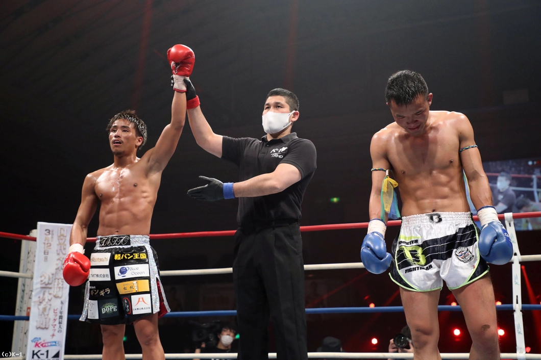 「試合が決まった時から 時代を変えるって言っていたんですけど、まだK-1の頭にはなれないなって実感したので、もっと練習して、ここで去年K-1チャンピオンになって1年間やってきて、まだ防衛戦もやってないので、3月のK’FESTAで強い外国人と防衛戦お願いします。今日はありがとうございました」