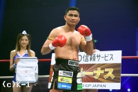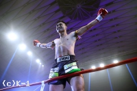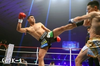 立ち上がった森田は右後ろ回し蹴り。だがジョムトーンは右フック、左ストレートでとらえ、森田の後ろ回し蹴りは見切ってかわす。そして左ストレートで森田に2度目のダウンを与えて初回を終える。