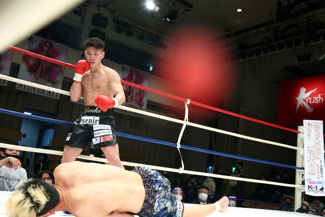 2Rも坂本は右ストレート、左フックで攻める。協はこれに応じて前に出るが、坂本は左フックを打ち込んで、これで協を前のめりに倒してKOした。