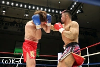3R、中平はガードでANIMALのパンチを防いでローとカーフキック。しかしANIMALは足にダメージを見せない。中平が後ろ回し蹴りを見せればANIMALはバックブロー。ANIMALは攻勢を変えず、飛びヒザからのパンチ連打、パンチからのヒザと繰り出し終了のゴングを聞く。