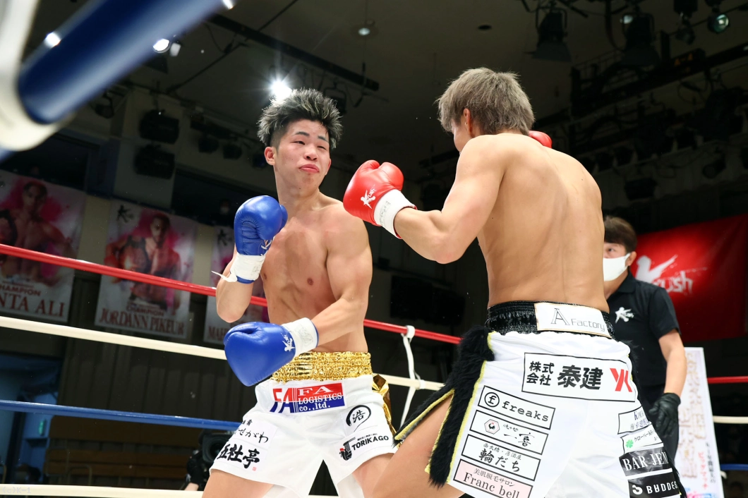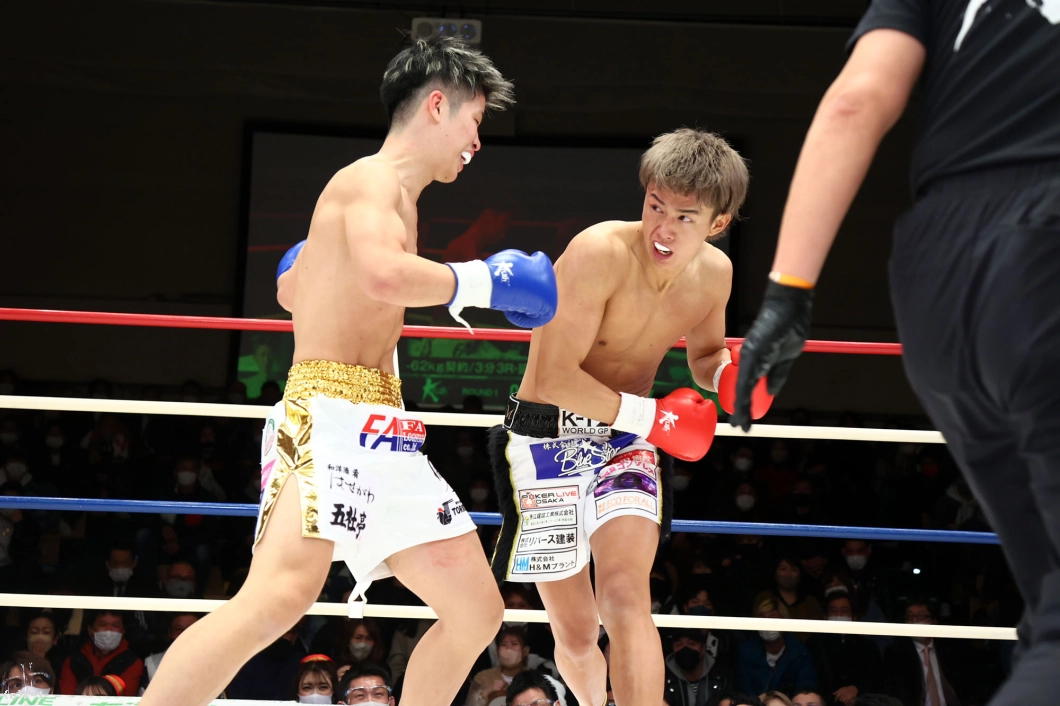 立ち上がった下村だが三宅は右ストレートで3度目のダウンを与え、下村陣営からタオルが入って三宅の勝利が決まった。